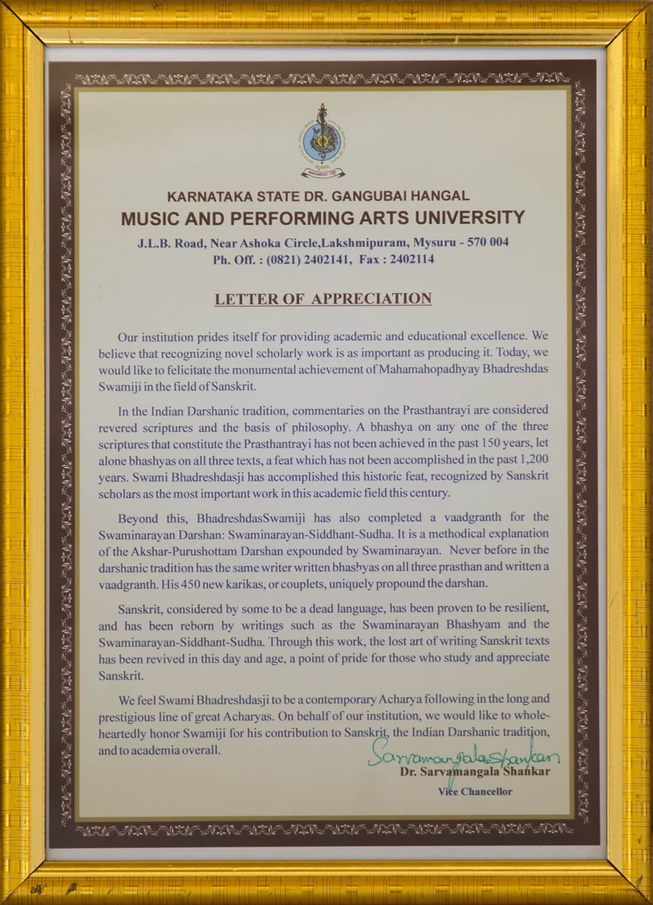 29 Letter of Appreciation – (Karnataka State Dr. Gangubai Hangal Music and Performing Arts University)