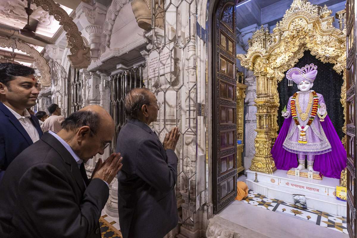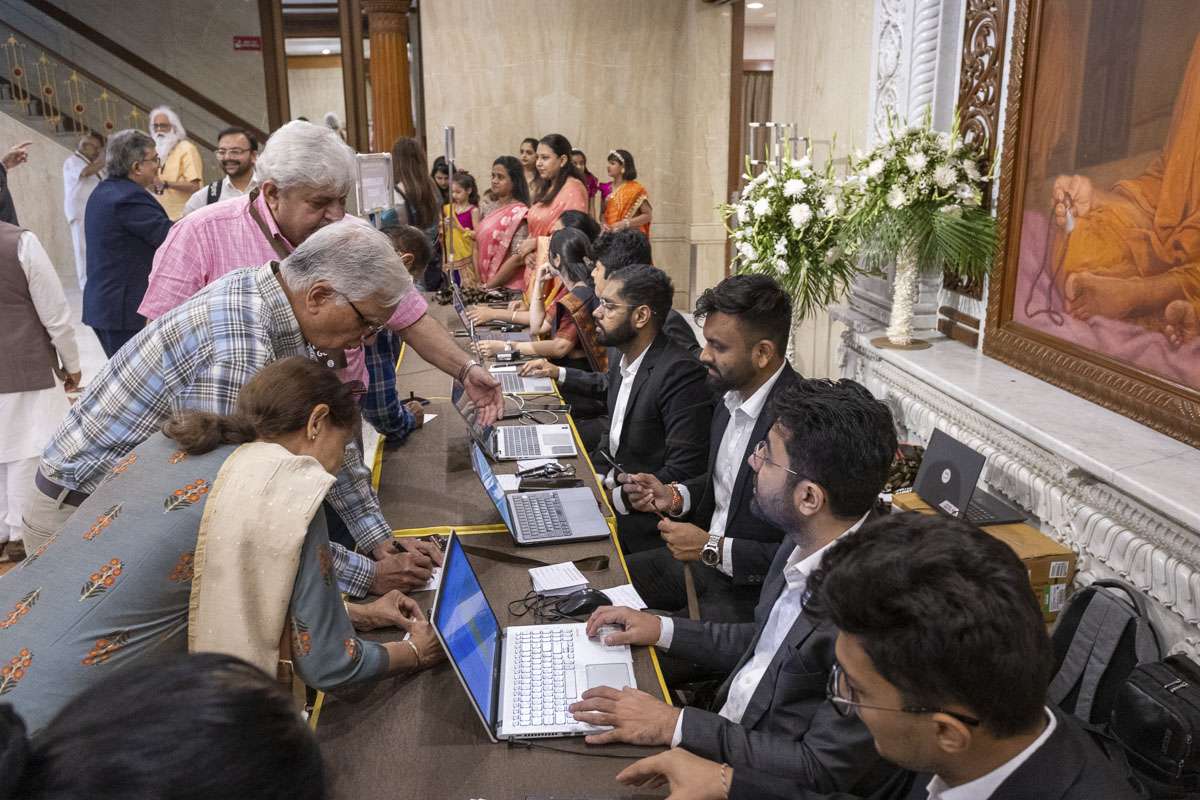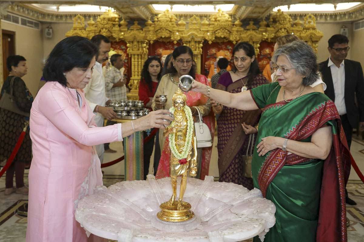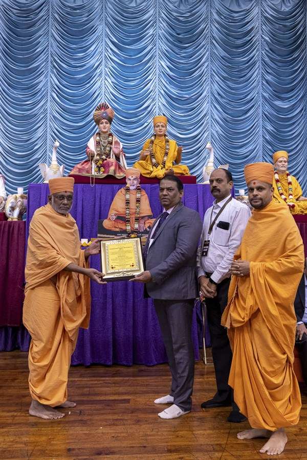 The program commenced with darshan, abhishek, Vedic prayers, and an introductory video on Mahant Swami Maharaj.